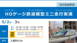 イベント HOゲージ鉄道模型ミニ走行実演が5/2・3にこども科学館で開催!全国の列車が走る