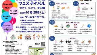 イベント 第21回生涯学習フェスティバルが10/25にクリエイトホールで開催 2025年10月25日(土)に生涯学習センタークリエイトホールにて「第21回生涯学習フェスティバル」が開催されます。「つながる ひろがる 学びの輪」をテーマに、ステージ発表や作品展示、体験コーナーなど、子どもから大人まで誰もが楽しめる催しが... 2025.09.26 イベント